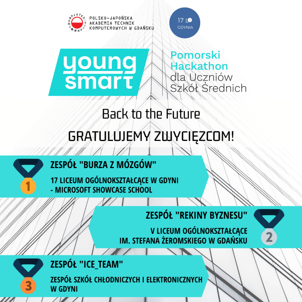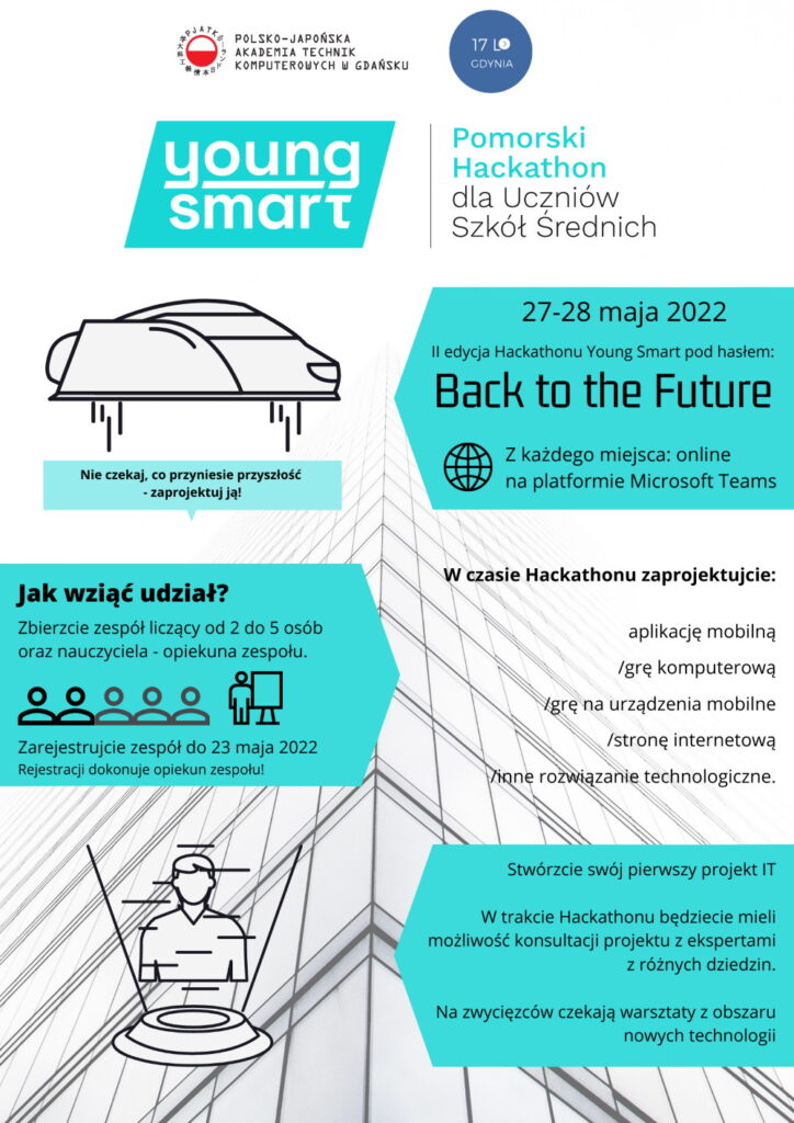 Pomorski Hackathon dla Uczniów Szkół Średnich Young Smart to inicjatywa promująca wykorzystanie przez młodzież nowych technologii w projektowaniu rozwiązań dla społeczeństwa i środowiska. Organizatorami są Polsko-Japońska Akademia Technik Komputerowych w Gdańsku oraz 17 LO w Gdyni – Microsoft Showcase School.