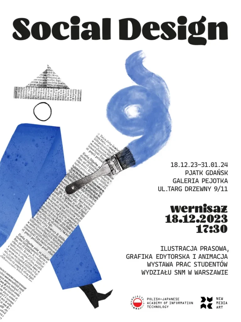 Zapraszamy do galerii Pejotka na wystawę Social Design, prezentującą prace studentów pierwszego roku studiów anglojęzycznych na wydziale Sztuki Nowych Mediów PJATK w Warszawie.