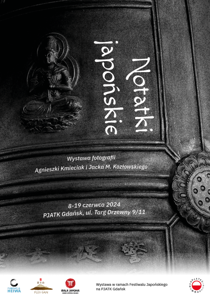 Notatki, to luźne zapiski w formie fotografii z wędrówek po Japonii, ze spotkań z ludźmi, wspomnienia dźwięków, kształtów i zapachów. To zmieniające się na przestrzeni bez mała 30 lat, jakie minęły od naszej pierwszej podróży do Japonii, odczucia, fascynacje i emocje. To rozrzucone kartki papieru, zapiski mijającego czasu. Trwające setki lat świątynie, ogrody zmieniające się wraz z porami roku, omszałe kamienie, ludzie, których już nie ma. Zapis minionego czasu, fragmentu życia autorów wystawy.