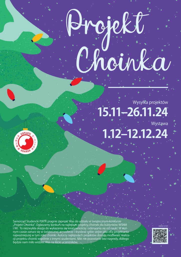 📢**Samorząd Studencki PJATK Filia w Gdańsku pragnie zaprosić Was do udziału w świątecznym konkursie „Projekt Choinka”! Ogłaszamy konkurs na najlepsze projekty choinek dla budynków WSNM i WI !**📢