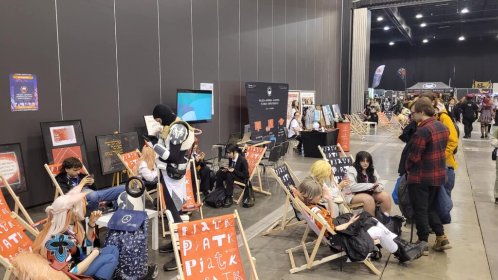 ✨W miniony weekend (21–23 luty) Amber EXPO zamieniło się w prawdziwe królestwo popkultury – a razem z PJATK Gdańsk mieliśmy w tym swój udział. Nasza strefa relaksu przyciągnęła tłumy spragnionych odpoczynku i kreatywnej zabawy. Na wygodnych PJATKowych leżakach uczestnicy mogli złapać chwilę oddechu, a jednocześnie wziąć udział w quizie o kulturze japońskiej, gdzie czekały ich atrakcyjne nagrody.