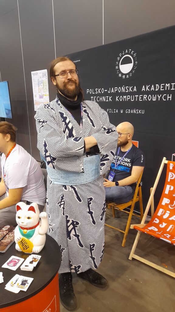 🎎Wielbiciele tradycji japońskiej mieli okazję przymierzyć oryginalne yukaty, a tuż obok mogli podziwiać imponującą wystawę kaligrafii stworzoną przez naszych studentów. Dla tych, którzy wolą nowoczesne technologie przygotowaliśmy stanowiska do rysunku cyfrowego – każdy mógł spróbować swoich sił na profesjonalnych tabletach graficznych.