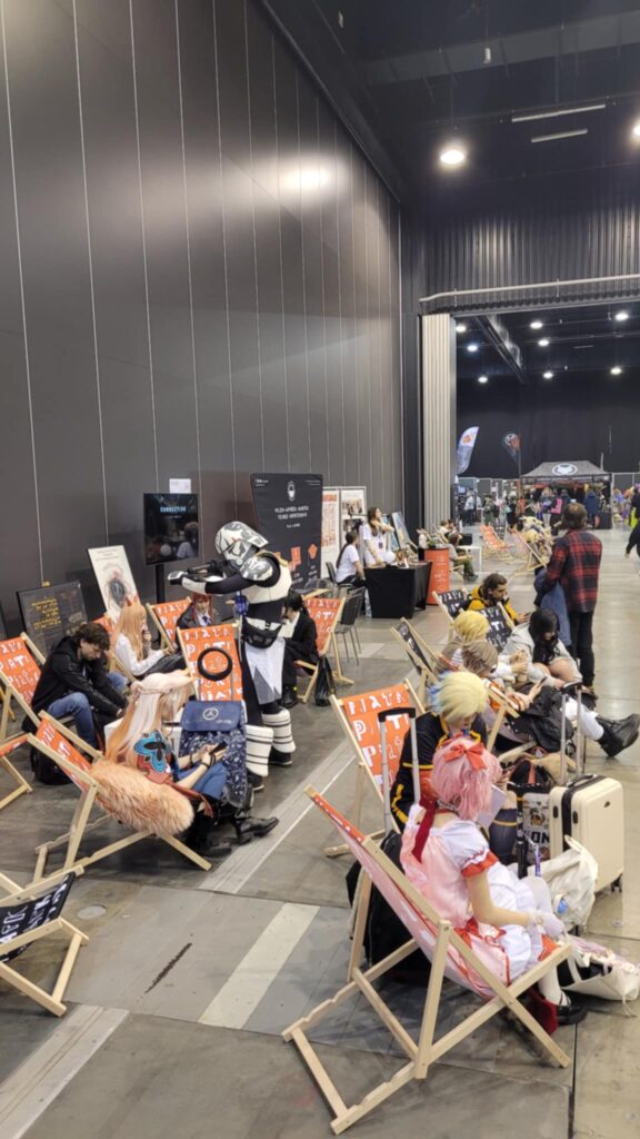 ✨W miniony weekend (21–23 luty) Amber EXPO zamieniło się w prawdziwe królestwo popkultury – a razem z PJATK Gdańsk mieliśmy w tym swój udział. Nasza strefa relaksu przyciągnęła tłumy spragnionych odpoczynku i kreatywnej zabawy. Na wygodnych PJATKowych leżakach uczestnicy mogli złapać chwilę oddechu, a jednocześnie wziąć udział w quizie o kulturze japońskiej, gdzie czekały ich atrakcyjne nagrody.