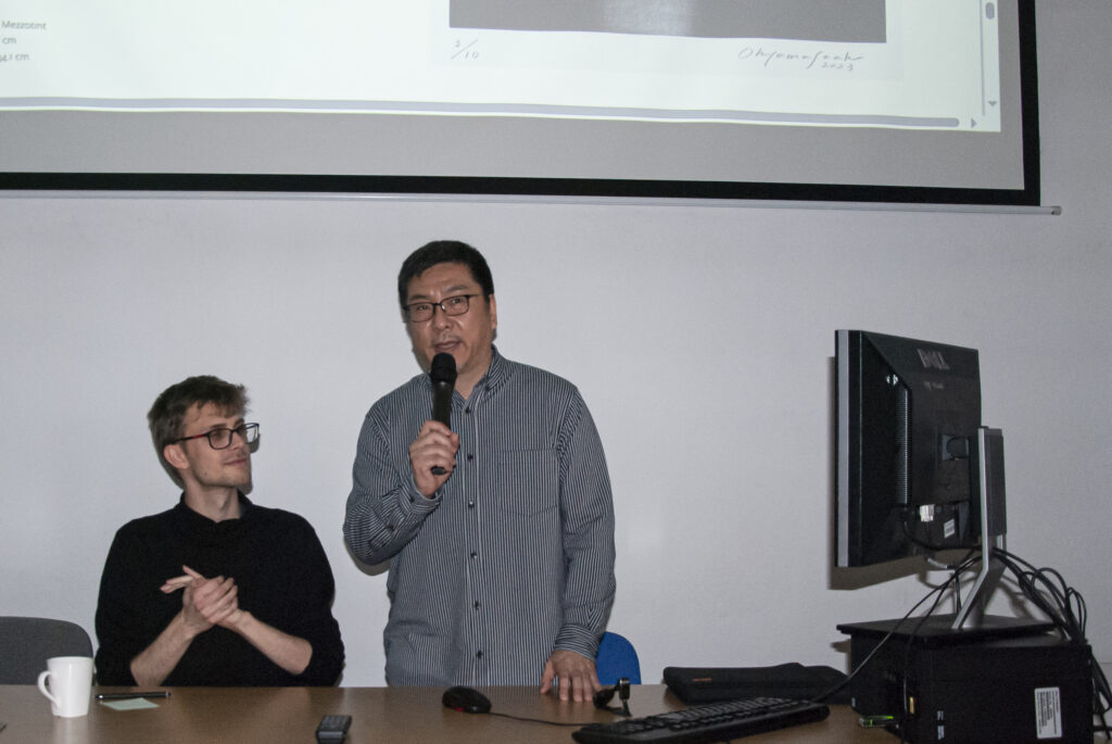 We wtorek 4 marca br. Wydział Sztuki Nowych Mediów PJATK Gdańsk gościł japońskiego artystę, Pana Masaaki Ohya, który przeprowadził wykład dla studentów na temat swojej wystawy grafiki warsztatowej, inspirowanej naturą i jej przemijalnością. Artysta zaprezentował swoje prace stworzone technikami akwaforty i mezzotinty, dzieląc się procesem twórczym od pomysłu do realizacji. Studenci z zainteresowaniem uczestniczyli w wykładzie, zadając pytania dotyczące rad dla młodych twórców. Po wykładzie Pan Ohya odwiedził Wydział Sztuki Nowych Mediów, gdzie miał okazję zobaczyć prace studentów oraz pracownię grafiki warsztatowej.