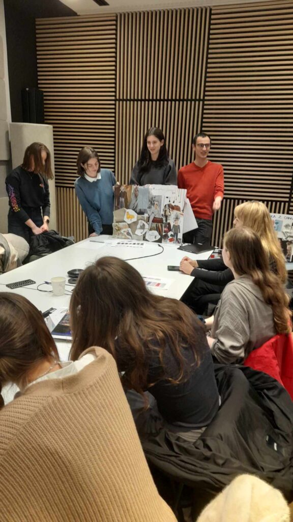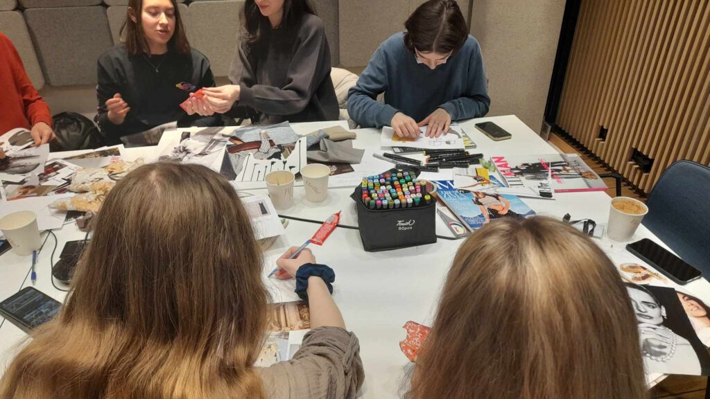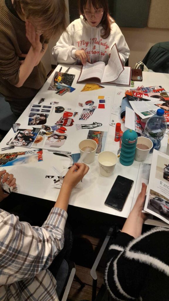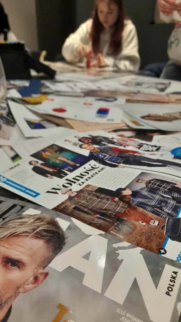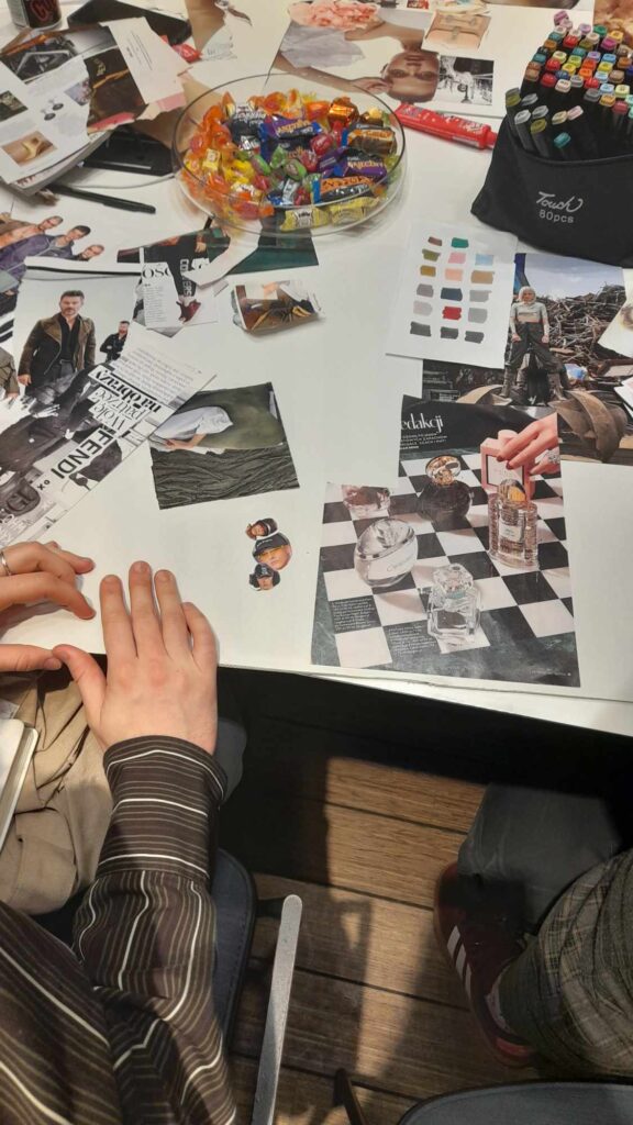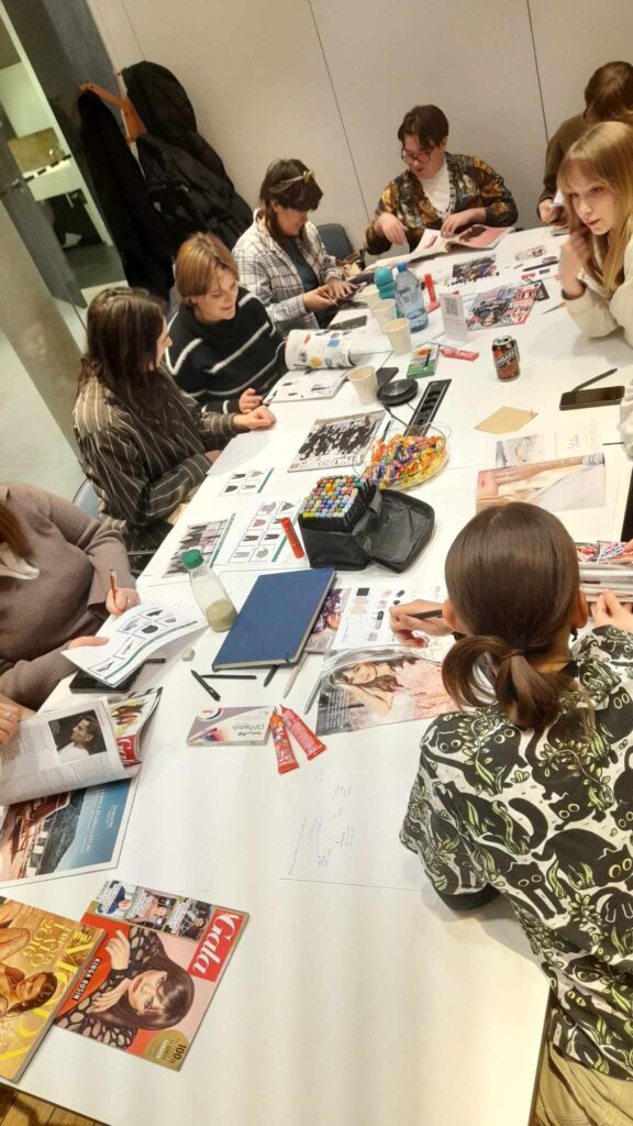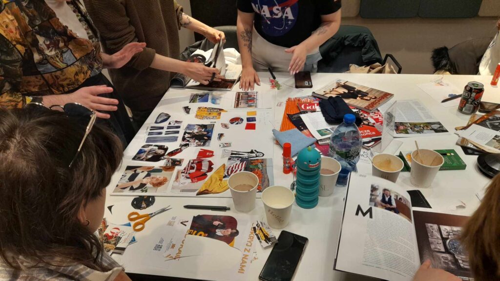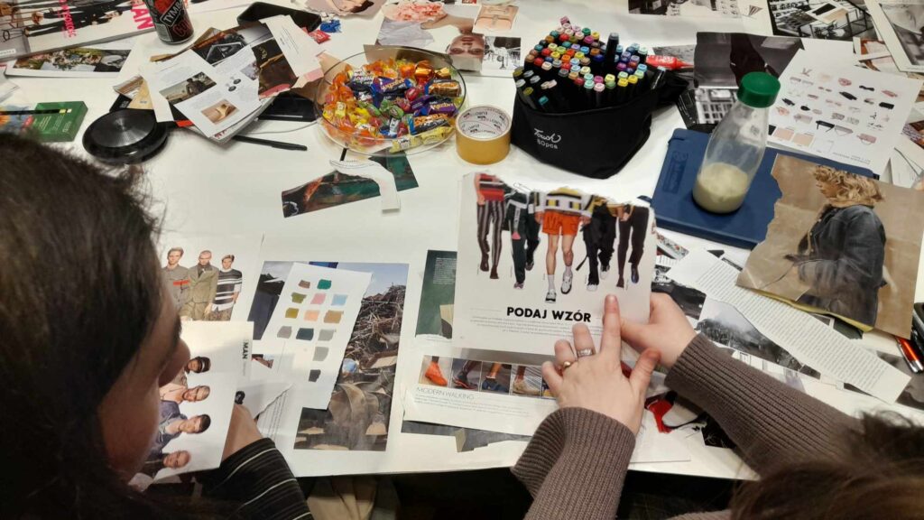 Po inspirujących prelekcjach uczestnicy wzięli udział w praktycznych warsztatach, podczas których mieli za zadanie stworzyć własny moodboard – wizualną kompozycję inspiracji, będącą podstawą projektowania kolekcji. Ćwiczenie to pomogło studentom lepiej zrozumieć proces budowania spójnej estetyki marki i dobierania elementów graficznych.