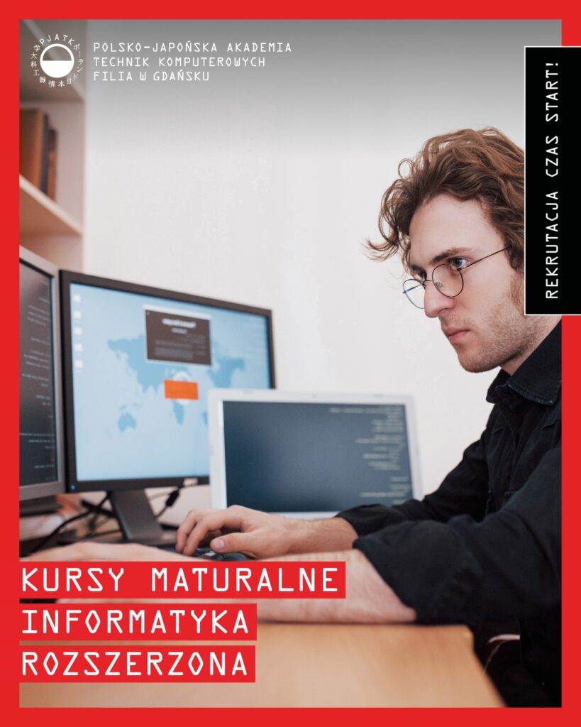 Kurs przygotowujący do egzaminu maturalnego z Informatyki (poziom rozszerzony) na PJATK Gdańsk to kompleksowe wsparcie dla maturzysty. Zajęcia prowadzi wykładowca akademicki z Wydziału Informatyki, co jest gwarancją wysokiego poziomu merytorycznego zajęć. Wszystkie nasze kursy odbywają się w kameralnych grupach, aby każda osoba otrzymywała indywidualne wsparcie prowadzącego. Kurs będzie realizowany w trybie hybrydowym: spotkania będą odbywały się stacjonarnie przy jednoczesnym połączeniu online – oznacza to, że uczestnik nie musi opuszczać żadnych zajęć w przypadku np. choroby. Na cały cykl składają się 22 spotkania. Każde ze spotkań to aż 3 godziny dydaktyczne, co pozwala na zgłębienie każdego zagadnienia i rozwiązywanie bardziej złożonych problemów. Kurs będzie prowadzony w budynku uczelni zlokalizowanym w samym centrum Gdańska, w nowocześnie wyposażonych laboratoriach komputerowych.