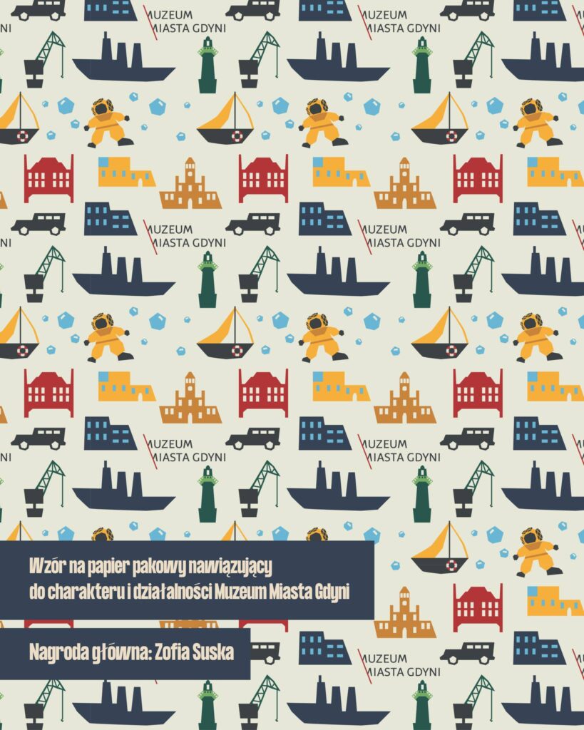 Kategoria: Wzór na papier pakowy nawiązujący do charakteru i działalności Muzeum Miasta Gdyni
