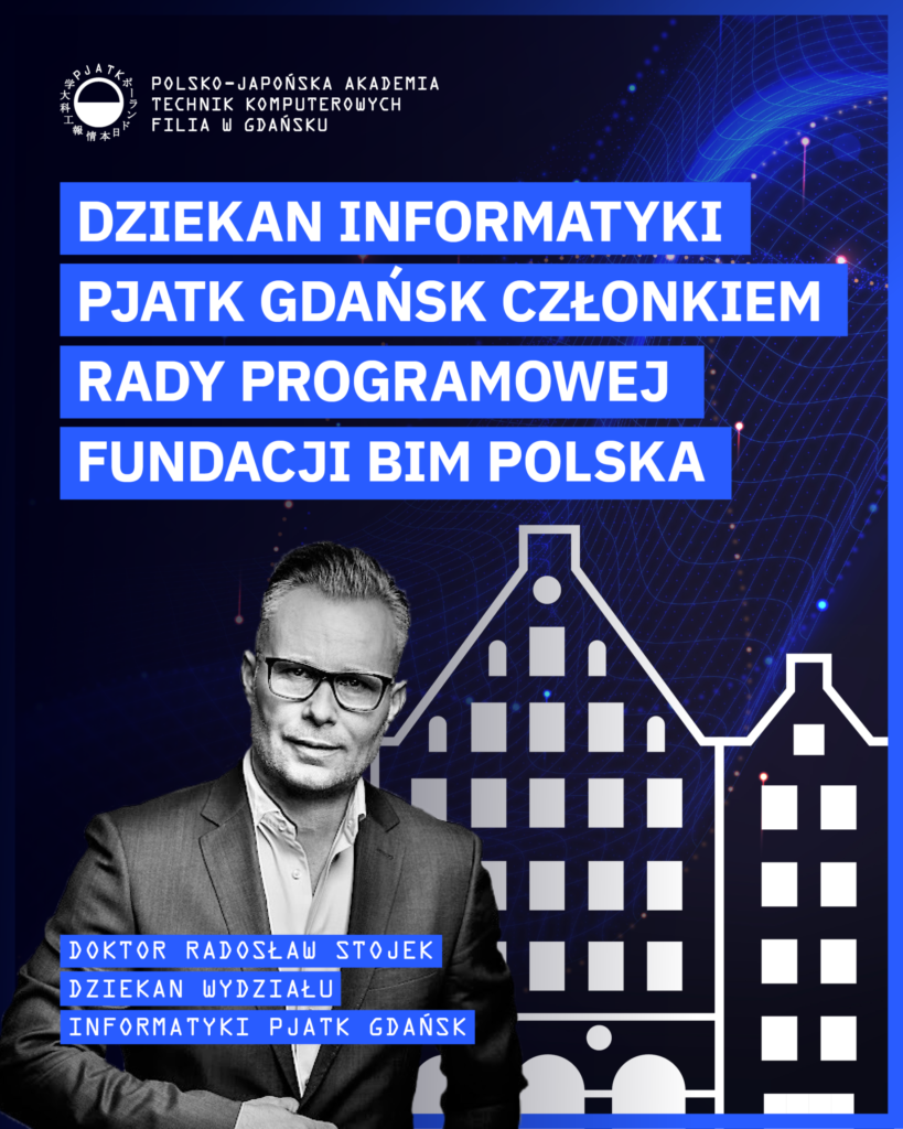 Z radością informujemy, że dr. Radosław Stojek, Dziekan Wydziału Informatyki w Filii PJATK w Gdańsku, dołączył do grona członków Rady Programowej Fundacji BIM Polska, zespołu o charakterze merytorycznym oraz opiniodawczo-doradczym, wspierającym działania Fundacji w zakresie transformacji cyfrowej sektora budowlanego, upowszechniania metodyki BIM oraz rozwoju standardów i dobrych praktyk.