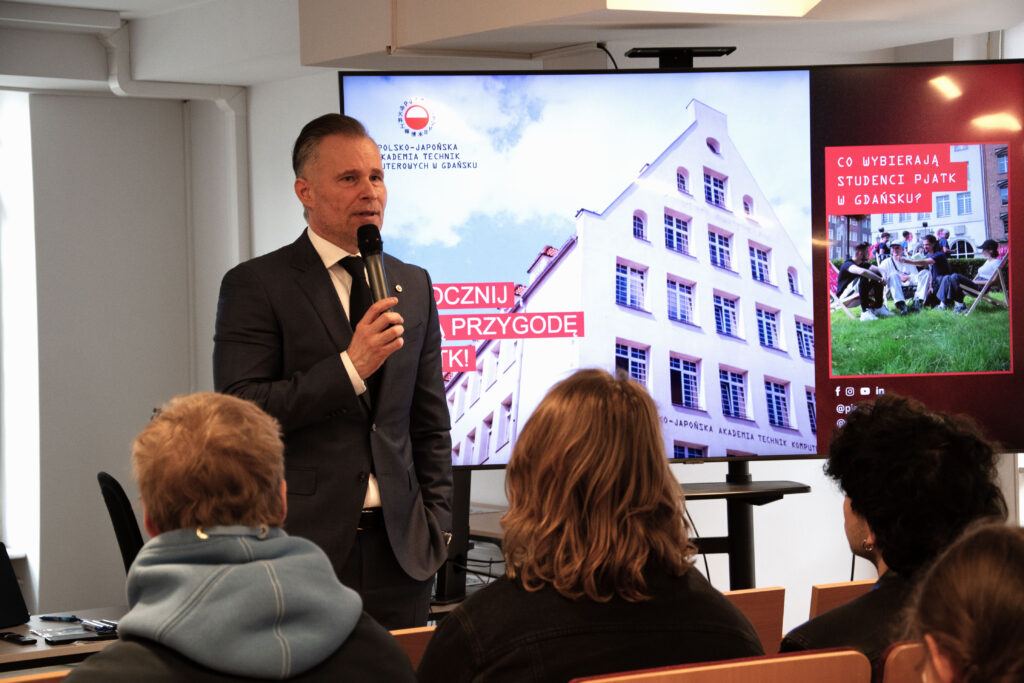 Wydarzenie, na które zapraszał Dziekan Wydziału Informatyki dr Radosław Stojek, było okazją do poznania realiów branży IT, inspirujących ścieżek kariery oraz możliwości rozwoju w obszarze technologii. Uczestnicy mogli nie tylko posłuchać o praktycznych aspektach pracy w IT, ale również poczuć atmosferę studiowania w PJATK Gdańsk ![]()