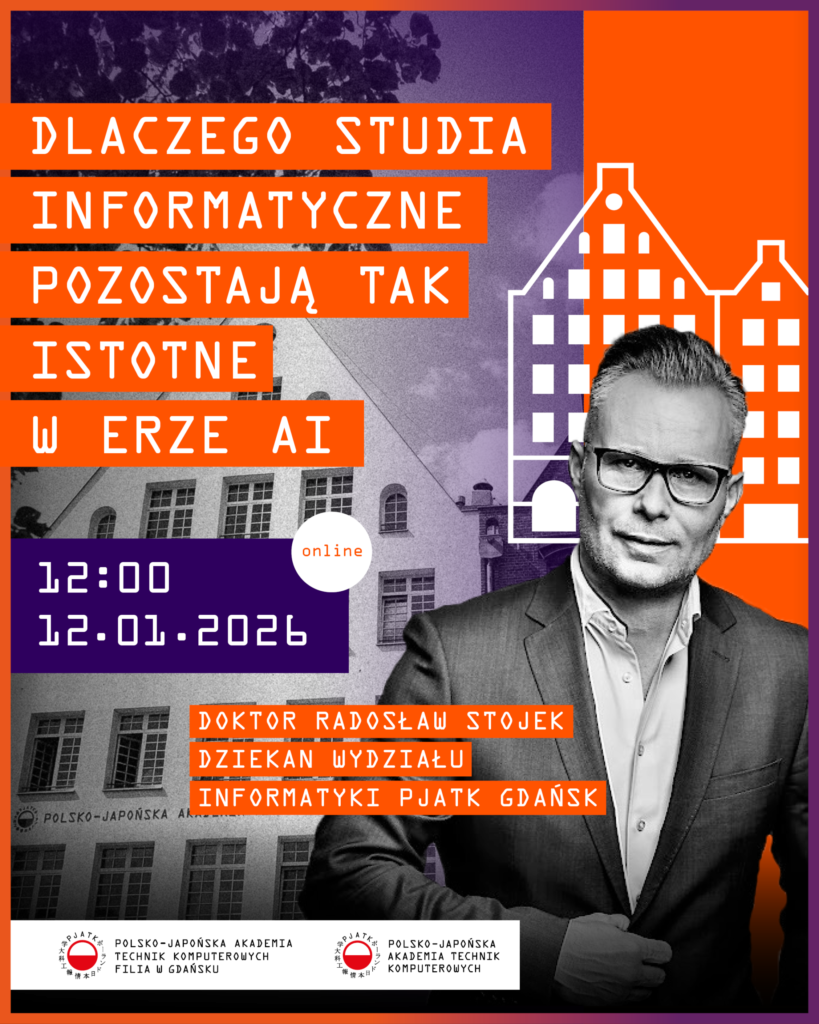 Celem spotkania jest rozwianie wątpliwości dotyczących sensu studiów wyższych w dobie dynamicznego rozwoju sztucznej inteligencji oraz pokazanie, jakie miejsce zajmują dziś studia informatyczne na tle kursów i bootcampów. Uczestnicy poznają realne perspektywy zawodowe absolwentów kierunków informatycznych, a także obszary gospodarek przyszłości, które stanowią punkt wyjścia do rozmowy o kompetencjach inżyniera przyszłości i oczekiwaniach wobec współczesnej edukacji.