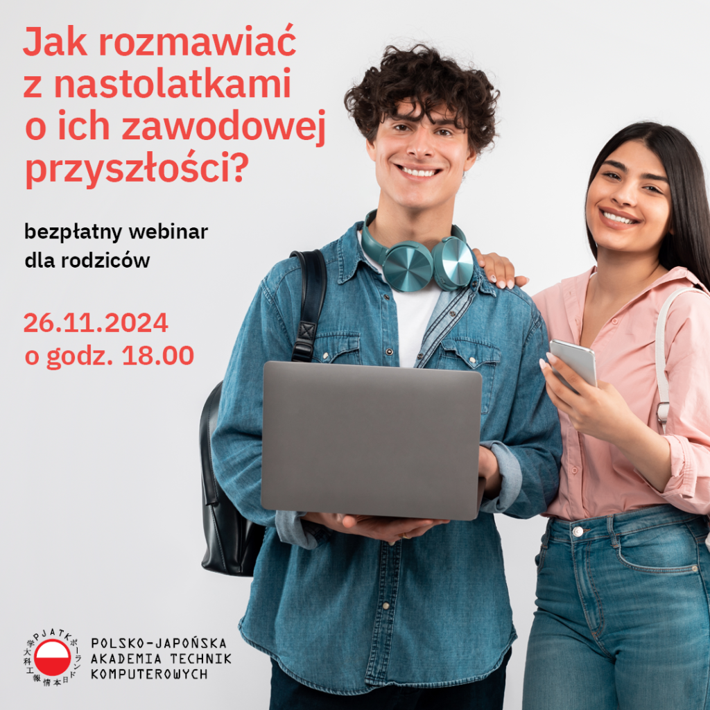 W Polsko-Japońskiej Akademii Technik Komputerowych rozumiemy, że jako rodzice nastolatków, którzy stoją przed wyborem kierunku studiów, zmagacie się z wieloma pytaniami, stresem i niepewnością. Dlatego postanowiliśmy zwrócić się w tej sprawie do specjalistów. Zachęcamy do odsłuchania nagrań naszych webinarów, w których eksperci dzielą się wiedzą na temat tego, jak wspierać swoje dzieci w ich edukacyjnej ścieżce.