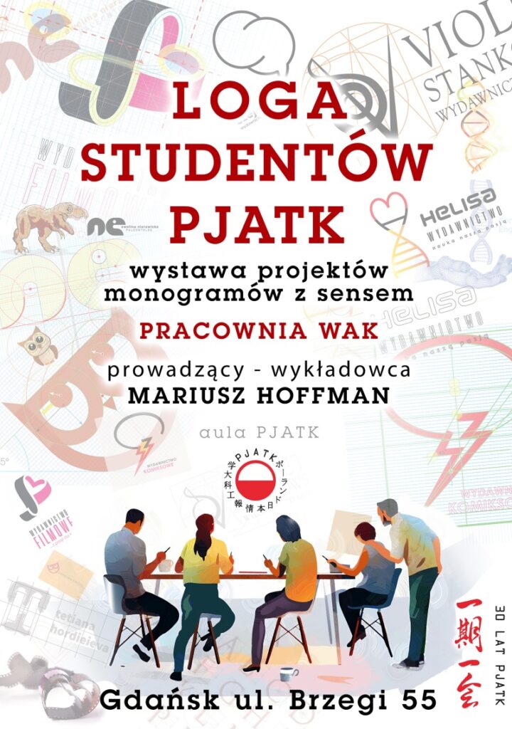 W auli Wydziału Sztuki Nowych Mediów w Gdańsku można oglądać wystawę prac studenckich pod kierunkiem mgr Mariusza Hoffmana “Loga studentów PJATK”. Studenci i studentki kierunku Grafika PJATK Gdańsk zaprojektowali znaki w oparciu o monogram imienia i nazwiska. Założeniem było nadanie temu zadaniu wymiaru osobistego. Gratką dla pasjonatów projektowania graficznego jest przedstawienie na planszach poszczególnych etapów tworzenia każdego logo.