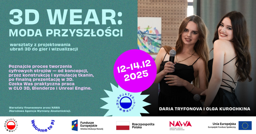 W miniony weekend w PJATK Gdańsk odbyły się intensywne warsztaty z projektowania ubrań do gier oraz wizualizacji w wirtualnej przestrzeni 3D. Zajęcia poprowadziły absolwentki PJATK – Daria Tryfonova i Olga Kurochkina, które podzieliły się swoim doświadczeniem w pracy z cyfrową modą.