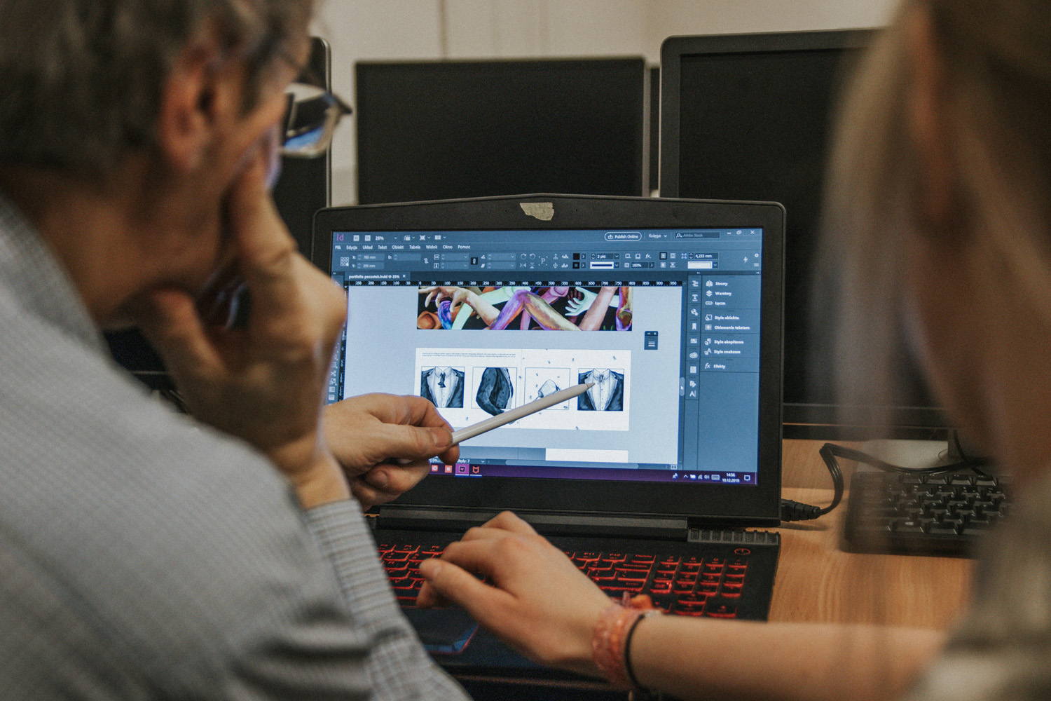 - Przed spotkaniem należy mieć już gotowe prace, które chcemy zaprezentować. Zalecamy wybranie kilku przykładów, na których chcemy się skupić, wykonanych w więcej niż jednej technice. Warto przygotować sobie odrębny folder zawierający wybranej prace cyfrowe i/lub dobrej jakości zdjęcia prac w innych technikach (rysunek, malarstwo, rzeźba itd.), aby w trakcie spotkania udostępnić widok tego folderu.